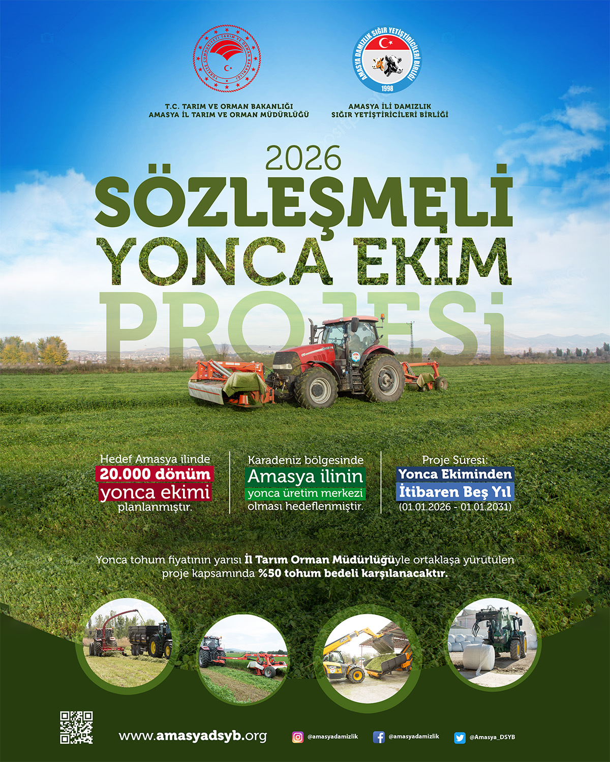 Birliğimiz, bölgemizdeki kaba yem ihtiyacının karşılanmasına katkı sağlamak amacıyla, 2016 yılında Merzifon İlçesi Yolüstü Köyü'ndeki Silaj Paketleme Tesisi'nde 500 ve 1.000 kiloluk 2 adet silaj paketleme sistemi ile mısır silajı paketleme faaliyetine başladı.